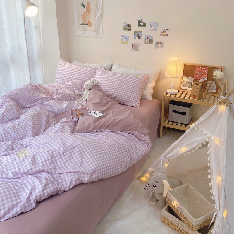 Bộ chăn ga cotton Tici cao cấp phong cách Hàn Quốc màu mới ( không kèm ruột)