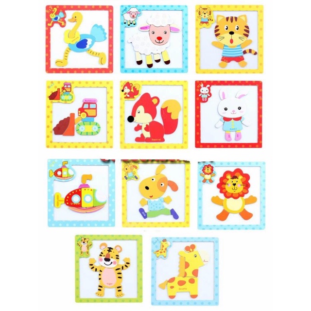 Combo 5 đồ chơi xếp hình lắp ráp tranh ghép gỗ 9 mảnh nhiều mẫu ngộ nghĩnh cho bé