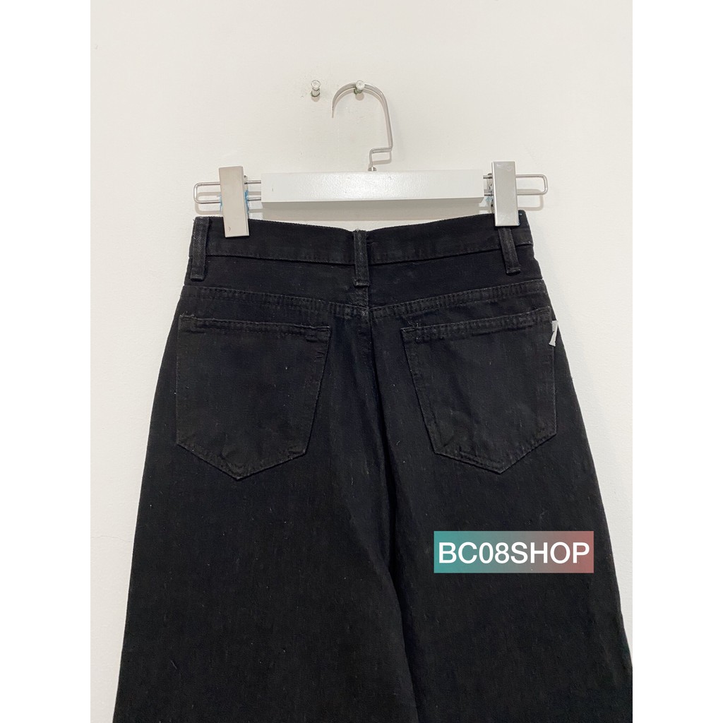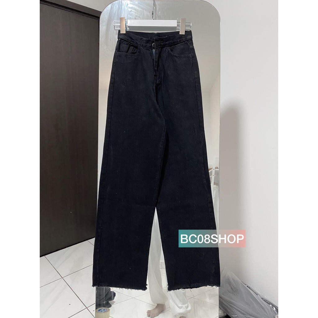 Quần jean ống rộng suông lưng cao màu đen
