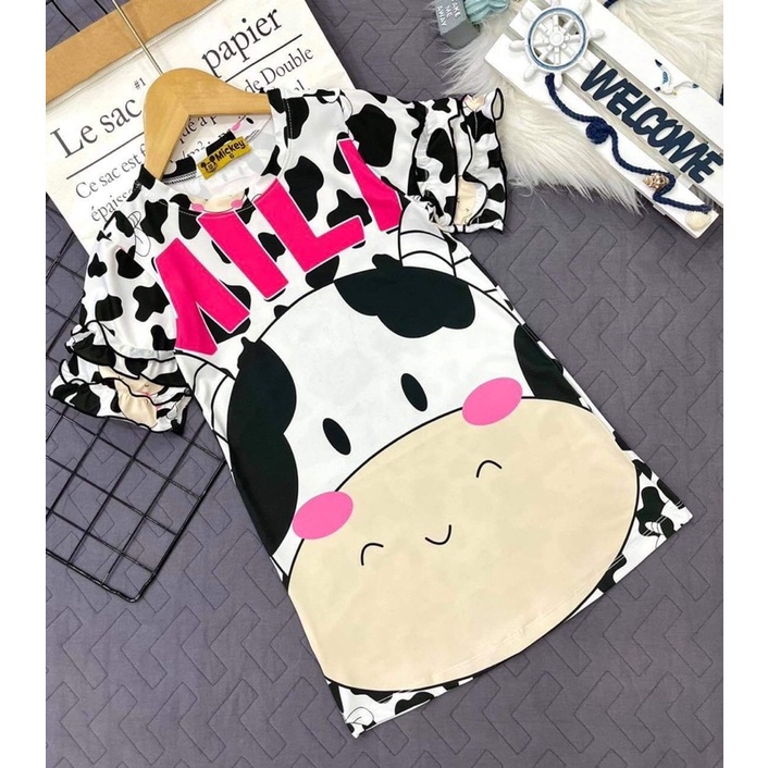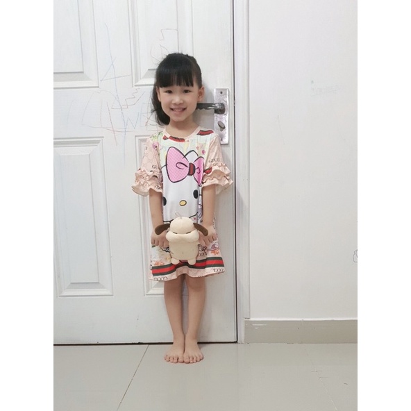 [Mã 11FASHIONSALE1 giảm 10k đơn 50k] Đầm suông thun lạnh in 3D size đại cho bé gái từ 24 đến 40kg - Đầm váy bé gái
