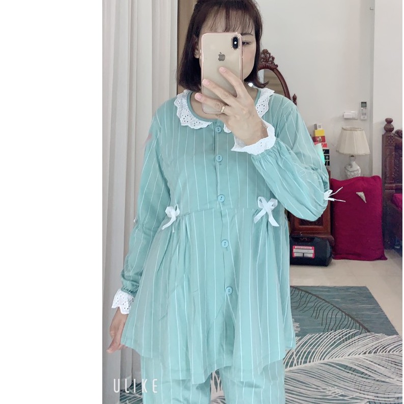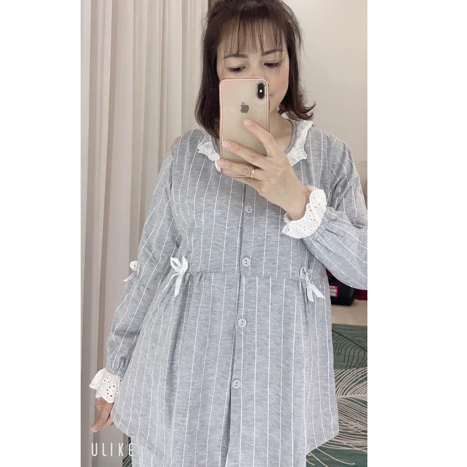 Bộ đồ bầu và sau sinh dài tay, Pyjama cho con bú BZ0011 chất mát mặc nhà mùa hè