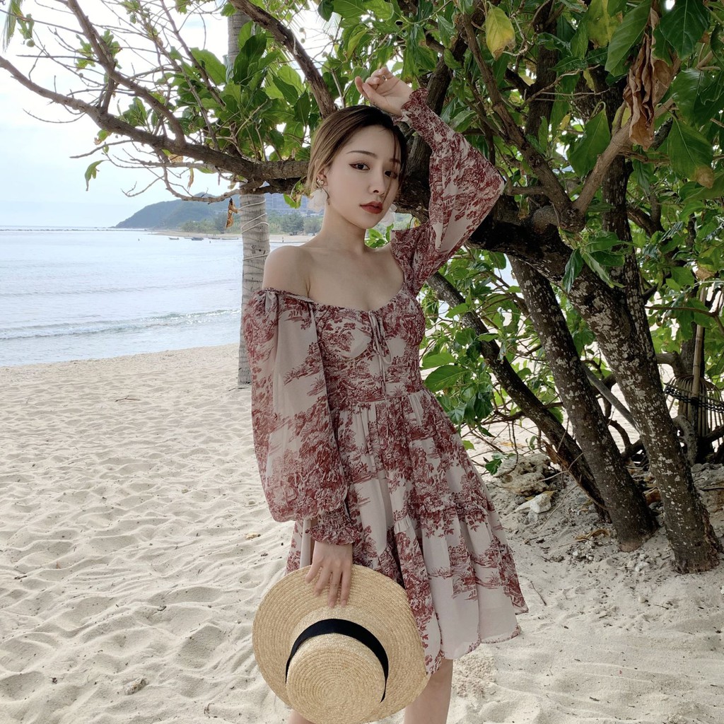 ĐẦM VÁY MAXI VINTAGE HỌA TIẾT HOA ĐUÔI CÁ DÁNG DÀI XÒE TRỄ BẸT HỞ VAI CỔ CHỮ U ĐẸP XỊN RẺ TEEN TRẺ TRUNG BIGSIZE M L XL