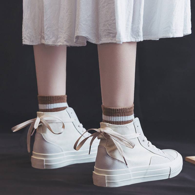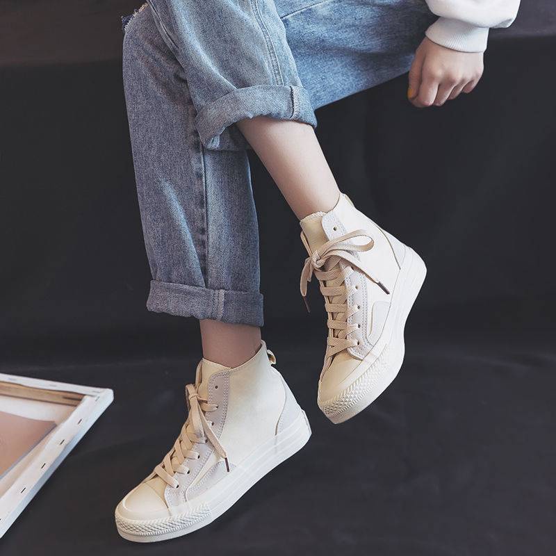 Giày Vải Canvas Cổ Cao Phong Cách Hàn Quốc Thời Trang Mùa Xuân Hàng Mới Dành Cho Nữ 5 2021