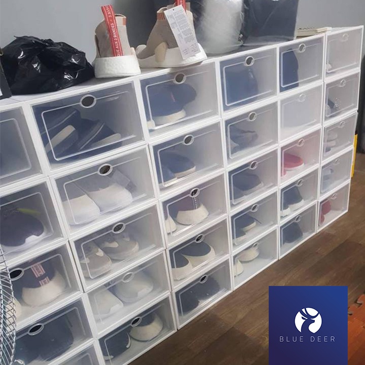 Hộp đựng giày ngăn kéo viền nhựa cứng trong suốt 2 lớp – Ảnh thật chịu nặng 5KG – Blue Deer