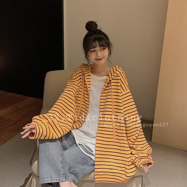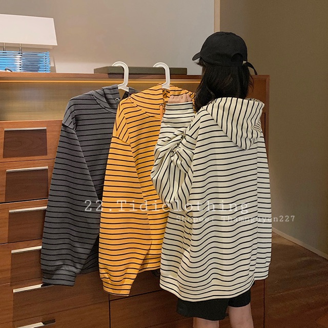 ORDER Áo khoác ulzzang kẻ ngang form rộng oversize có nón to / áo khoác kẻ sọc ngang hoodie tay dài nón to ORDER taobao