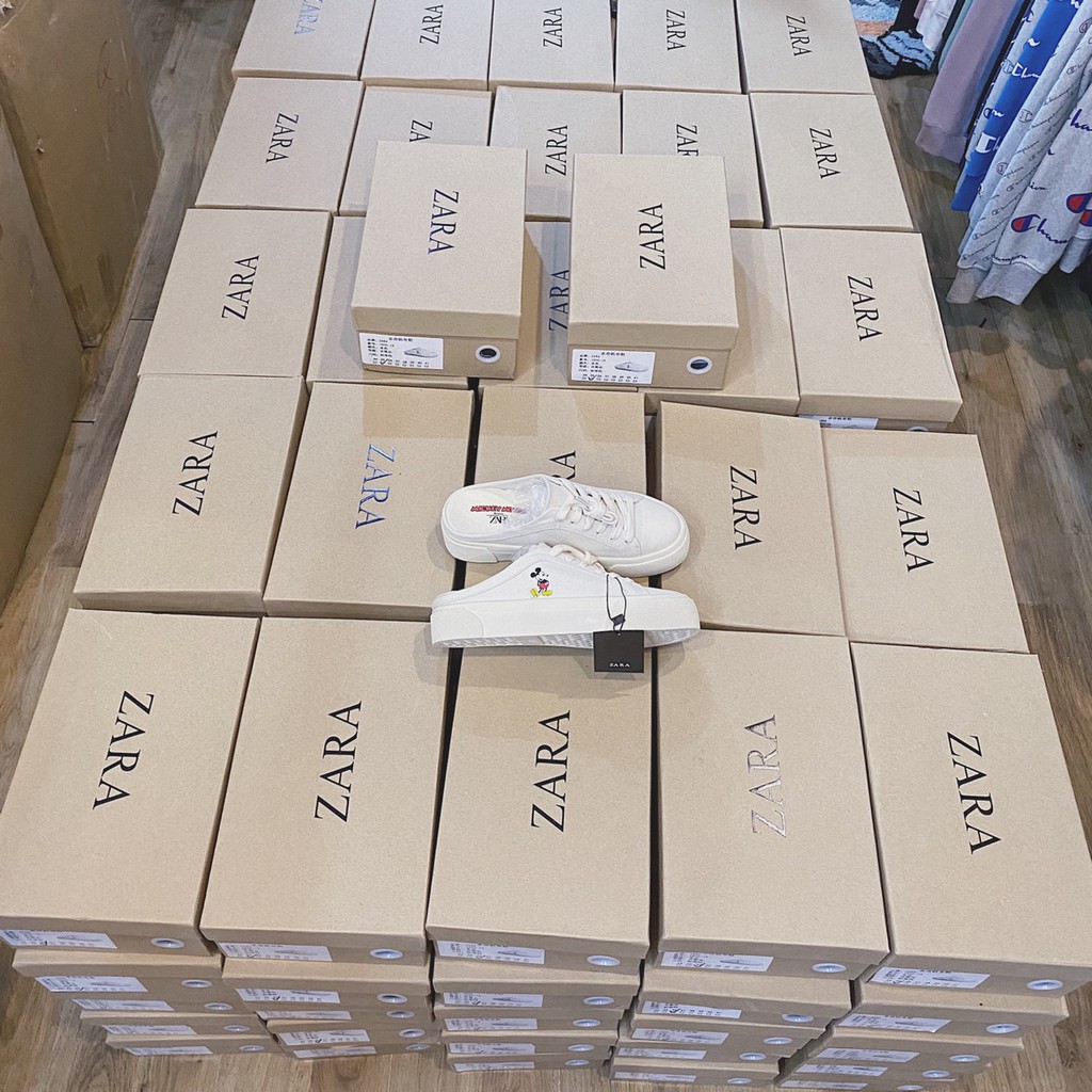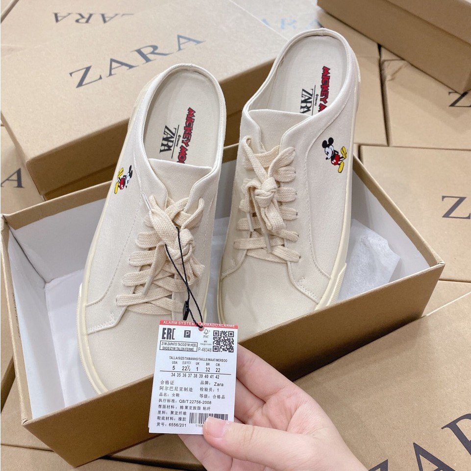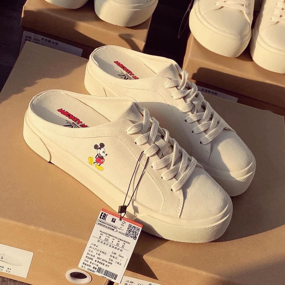 Giày sục nữ sneaker Zara Mule Mickey thể thao đế bằng cao 3cm