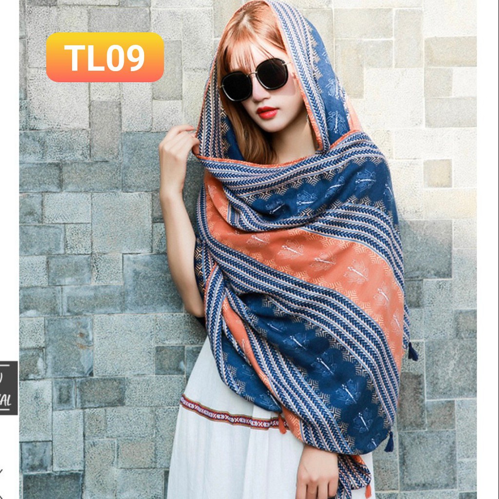 Khăn Choàng Boho Thổ Cẩm Đi Biển - Khăn Choàng Cổ GIữ Ấm Họa TIết Thổ Cẩm(HÀNG LOẠI 1)