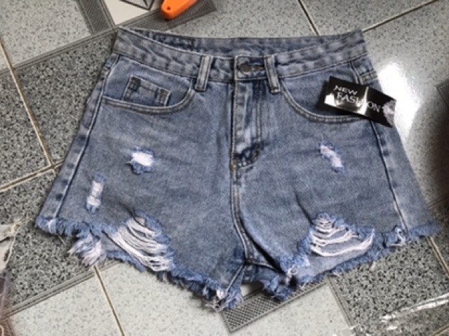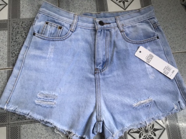 [GIÁ RẺ] Quần Sooc Jean Lưng Cao , Quần Đùi Nữ Túi Vuông Rách Nhẹ - Ảnh tự chụp