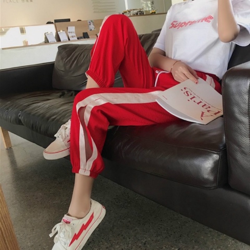 Quần Dài Ống Rộng Phối Hai Sọc Thời Trang Mùa Thu Năng Động