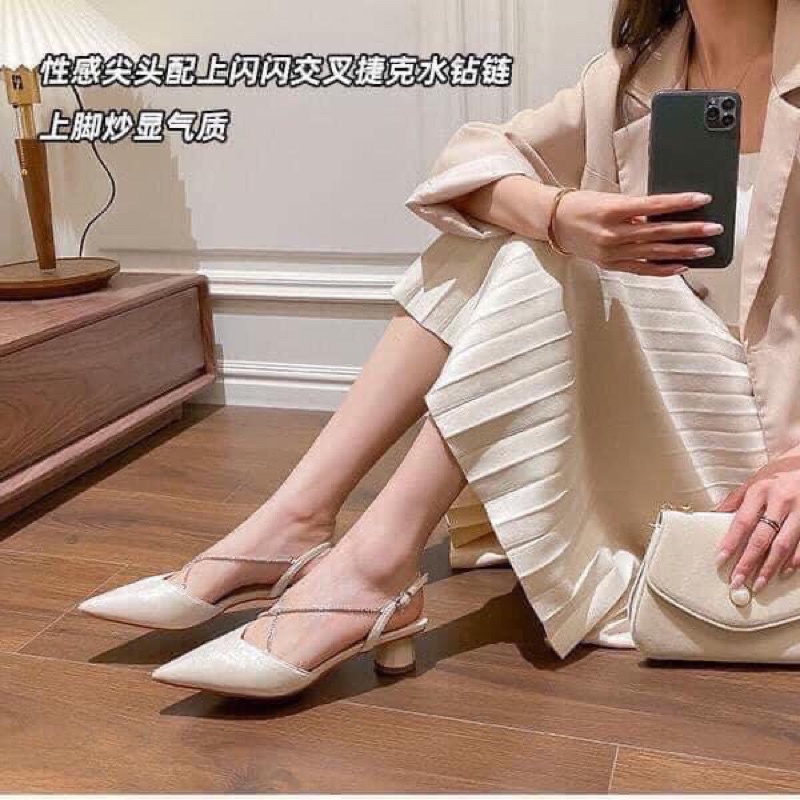Giày cao gót mũi nhọn hở gót 5 phân kiểu dáng năng động (13)