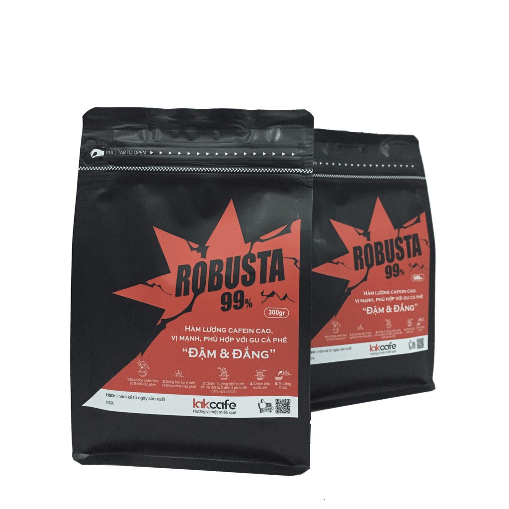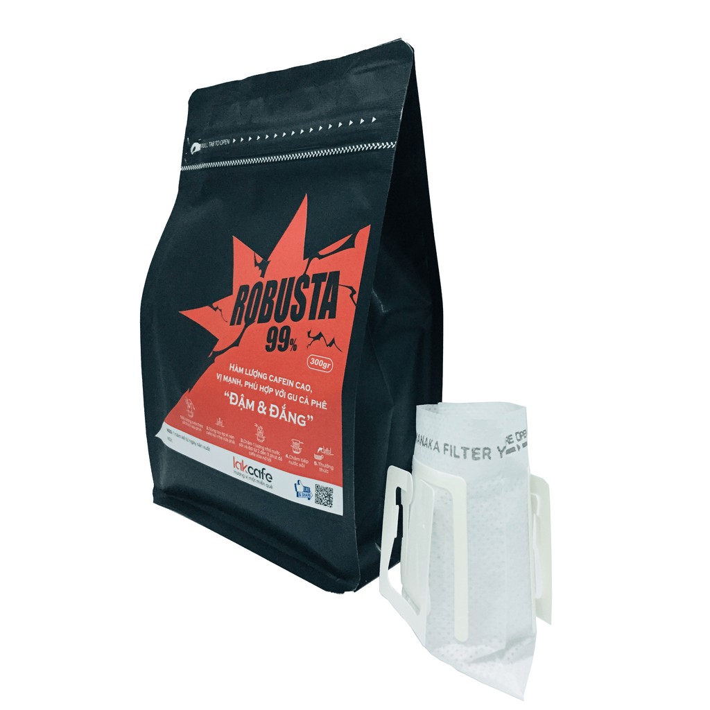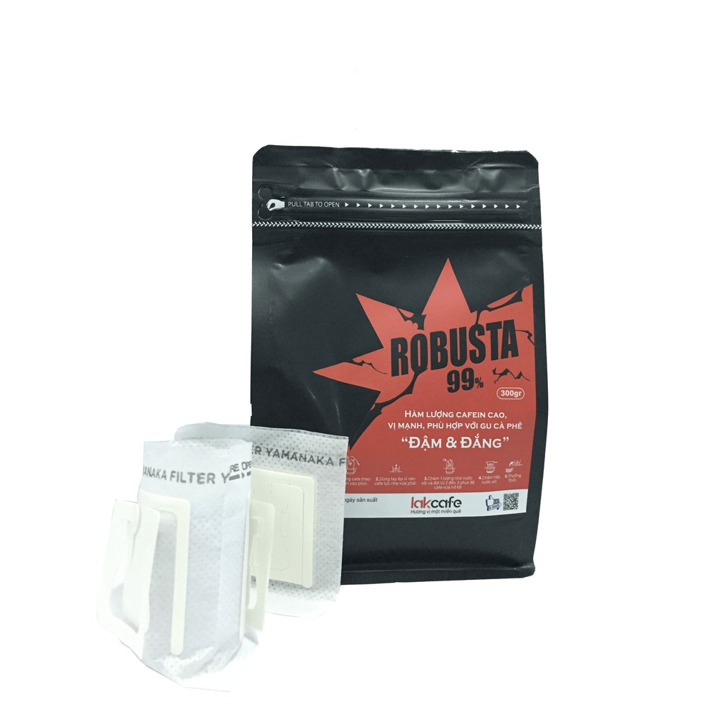[Tặng 2 Phin Du Lịch] 300gr Cafe Bột Robusta Nguyên Chất - Lakcafe Với Bí Quyết Nông Dân Dak Nông - Vị Mạnh, Đậm và Đắng