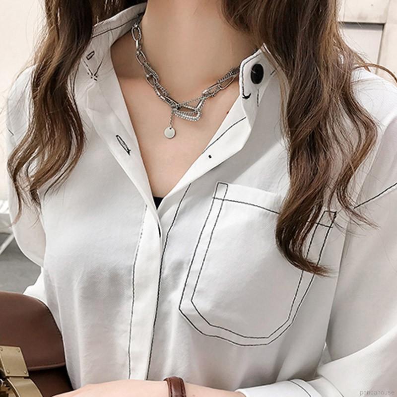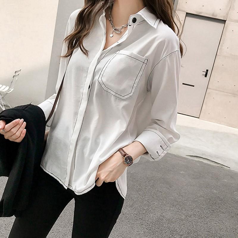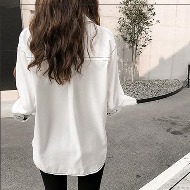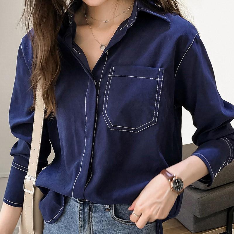 Áo Sơ Mi Tay Dài Màu Trơn Phong Cách Hàn Quốc