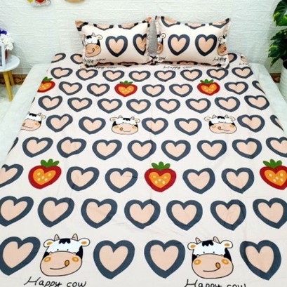 Bộ Ga giường cotton kèm áo gối nằm K'home vải cotton 3d poly siêu cute