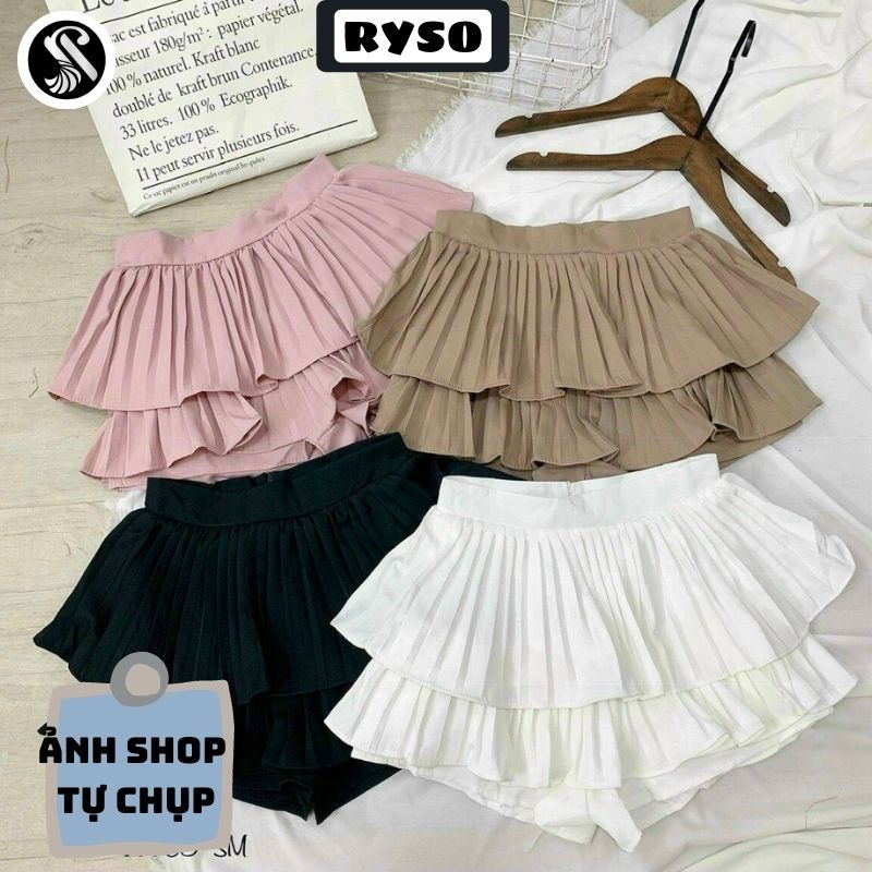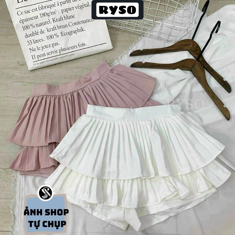 Chân Váy Tầng Xếp Ly Xòe Dáng Ngắn 2 Tầng Lưng Cạp Cao RYSO [ Kèm video sp + Ảnh ]