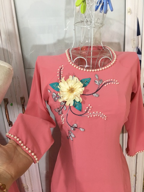 Áo dài đính hoa