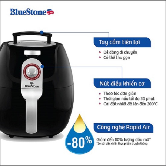 [Hàng Chính Hãng] Nồi Chiên Không Dầu Bluestone 5L - 5870 Cơ Bền, Đẹp, Có Video Hướng Dẫn Nấu Ăn Ngon