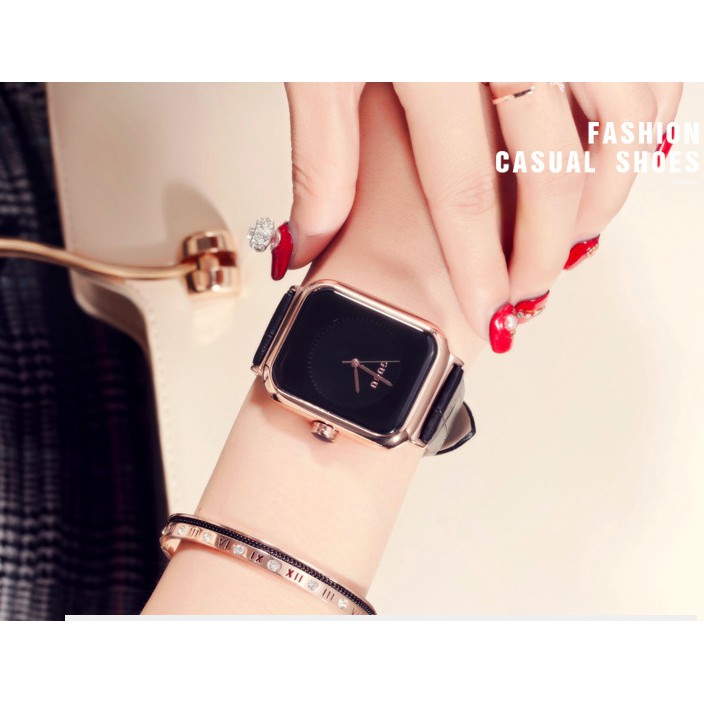 Đồng hồ nữ guou quai silicol mặt chữ nhật siêu hot 2021 bản dây aple donghonu (video ảnh thật)