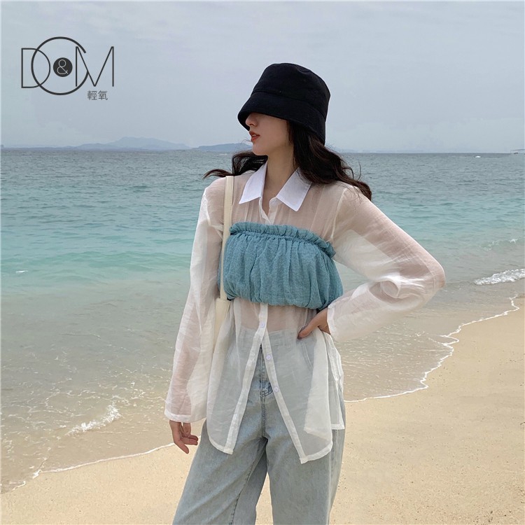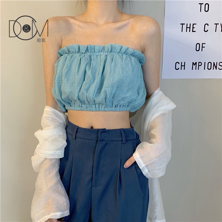 🌈Amour✨áo croptop áo kiểu áo kiểu nữ áo ống Áo Thun Tay Dài Màu Trắng Phong Cách Hàn Quốc Dành Cho Nữ