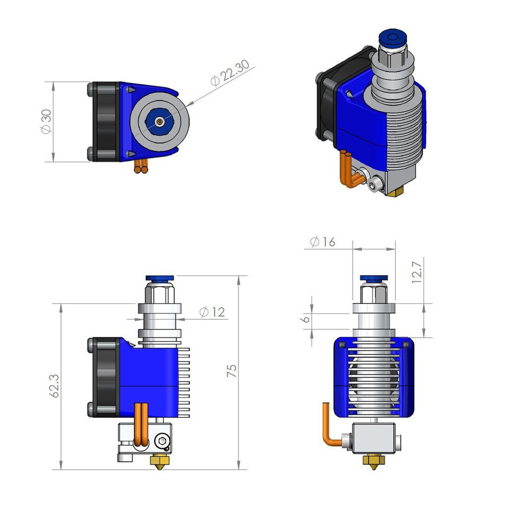 Đầu phun máy in 3D M6 0.4/1.75mm
