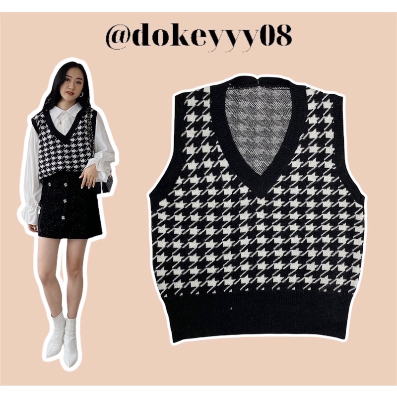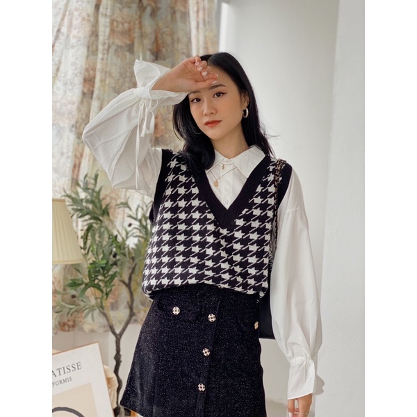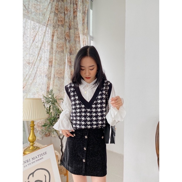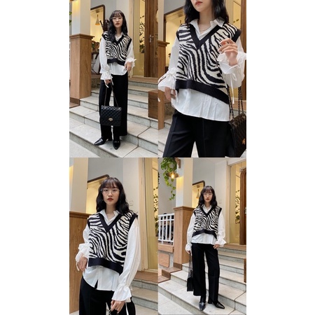 Áo gile len nữ Maika mỏng họa tiết thổ cẩm phong cách Hàn Quốc, phụ kiện thời trang YUNA