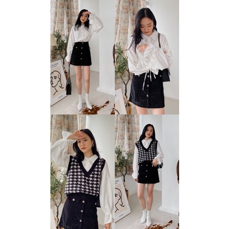 (Ảnh thật) Set Áo cardigan croptop len mỏng ulzzang và Chân váy kẻ caro