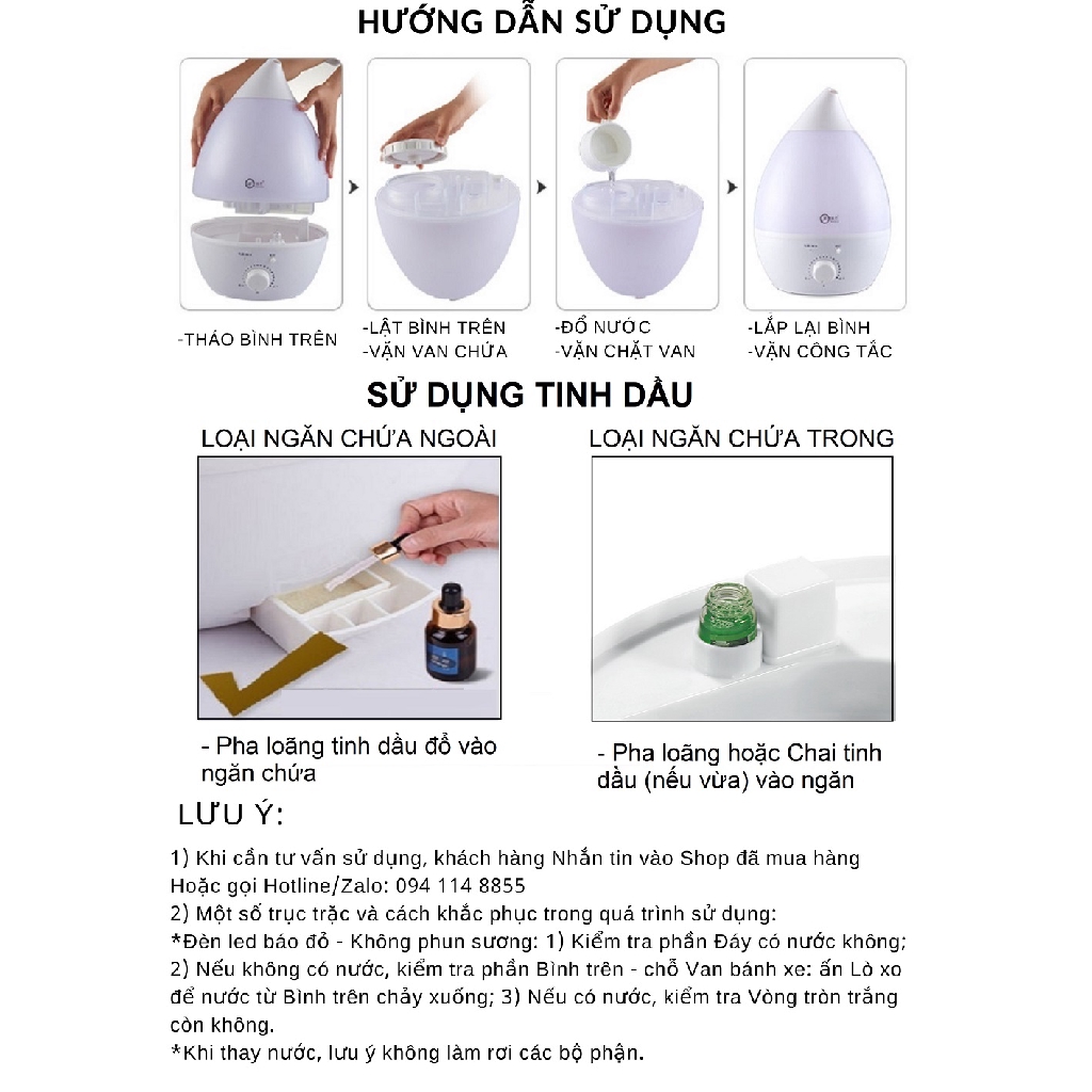 Máy Phun Sương Tạo Ẩm, Máy Xông Tinh Dầu Phun Sương