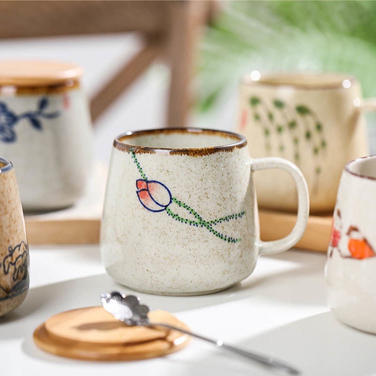 Cốc sứ - cốc sứ uống trà họa tiết vẽ tay xinh xắn nhiều màu dung tích 400ml - 450ml