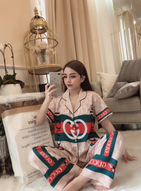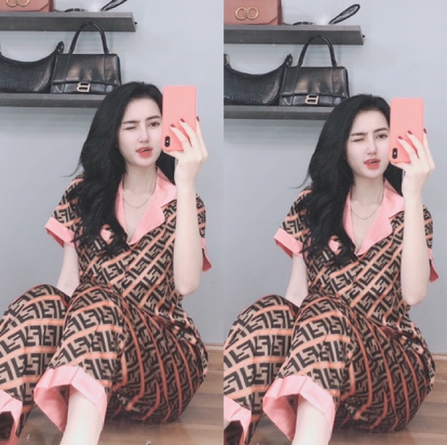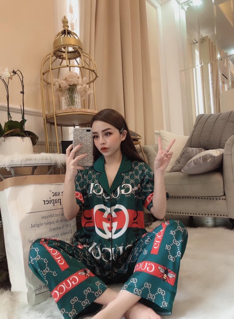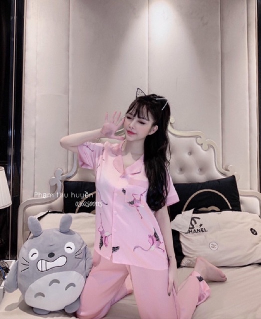 Bộ pyjama lụa satin dài siêu xinh kèm ảnh thật
