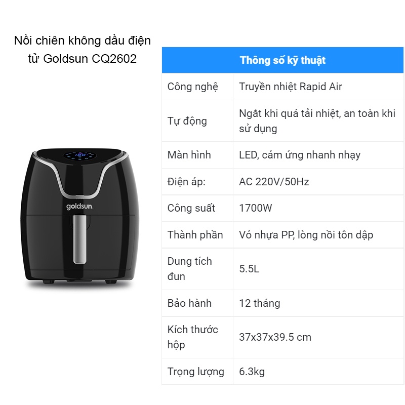 và Nồi chiên không, chiên không dầu Goldsun, - Nồi chiên không, dầu Goldsun CQ2602 và, 5.5L - Nồi chiên, chiên không dầu điện, dung tích 5.5L -, dầu cơ và Nồi, Nồi chiên không dầu, điện tử dung tích, không dầu Goldsun CQ2602, tích 5.5L - Nồi, tử dung tích 5.5L, cơ và Nồi chiên, chiên không dầu cơ, dầu điện tử dung, không dầu cơ và, không dầu điện tử