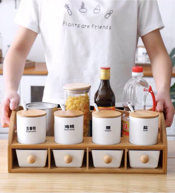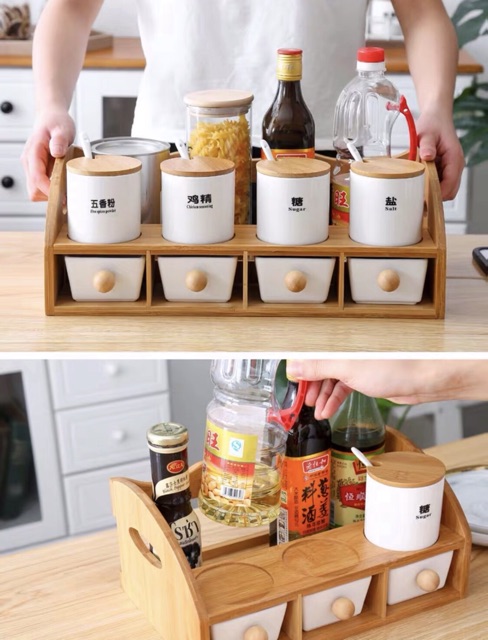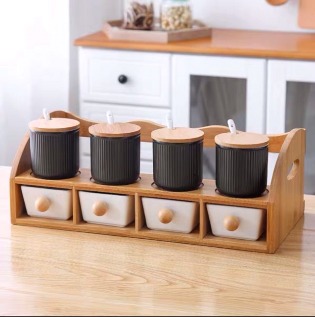 gia vị và kệ, gỗ phong cách Nhật, kệ gỗ phong cách, vị và kệ gỗ, và kệ gỗ phong, Set gia vị và