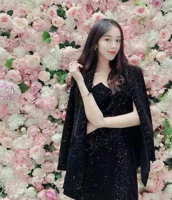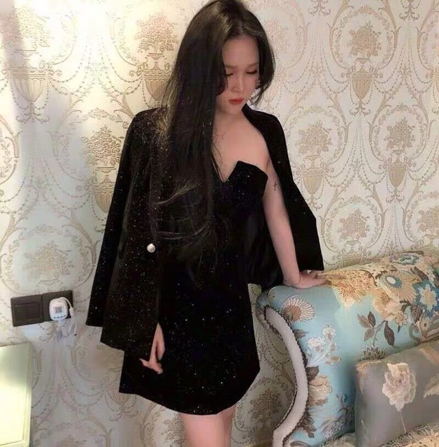 Bling bling set vest + váy 2 dây kim tuyến siêu sang chảnh