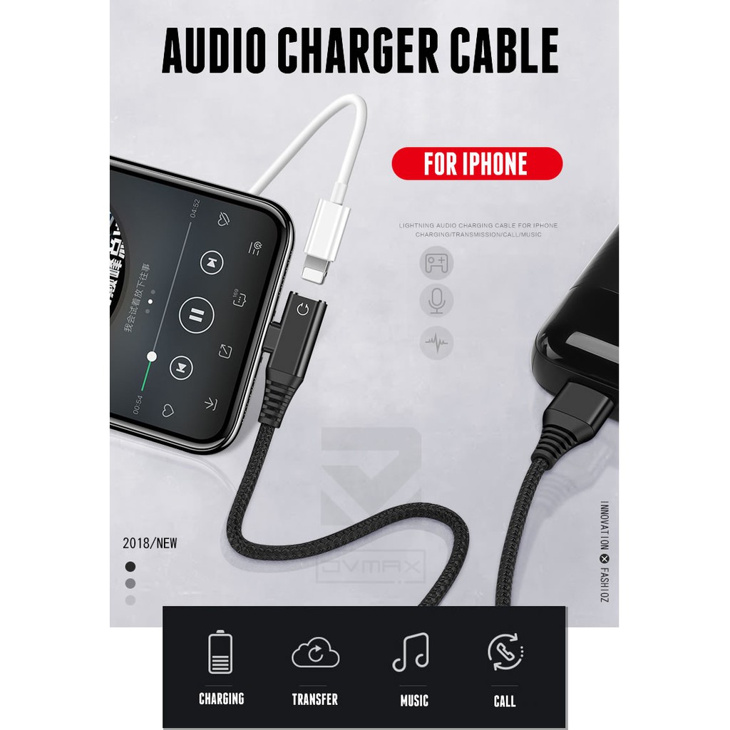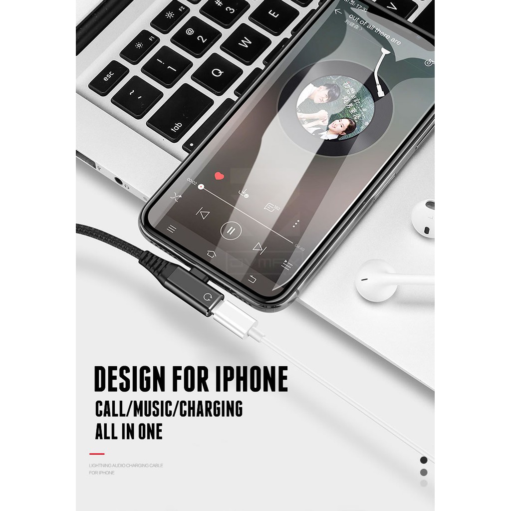 Jack Chuyển Đổi, Giắc Chia Cổng Sạc + Tai Nghe Có Hỗ Trợ Míc Cho iPhone 7,7 plus,8,8 plus,x,xr,xs,xs max,11,11 pro max