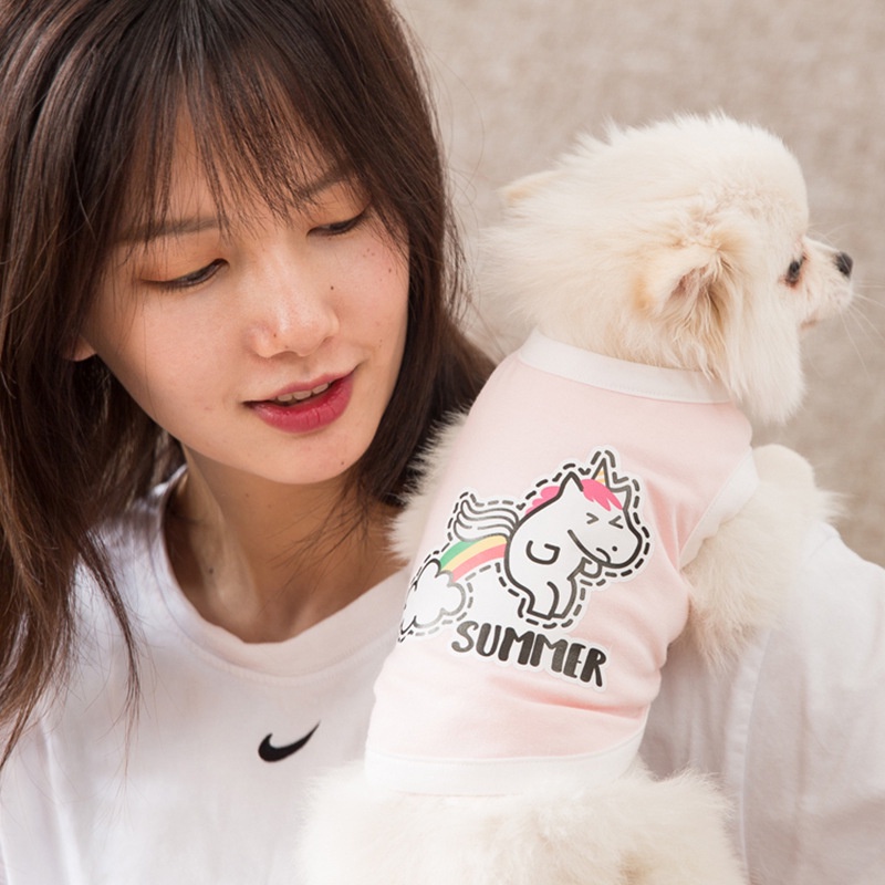 Áo thun in hình kỳ lân hoạt hình thoáng khí thời trang mùa hè cho thú cưng