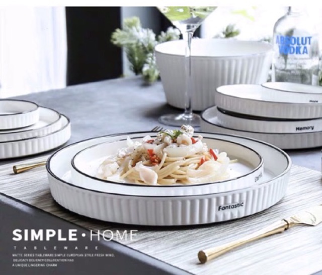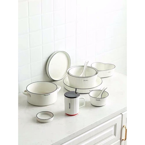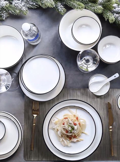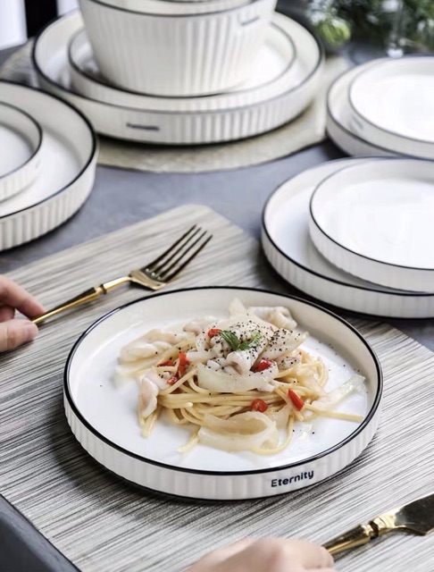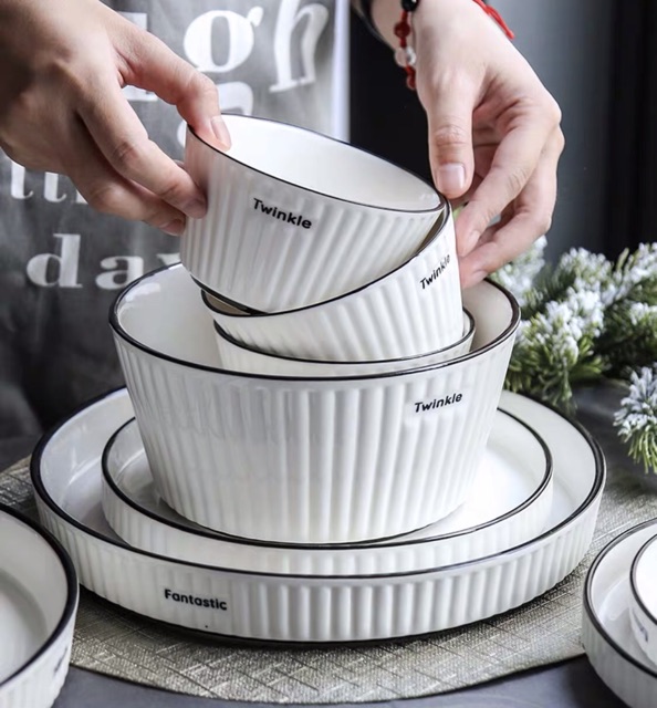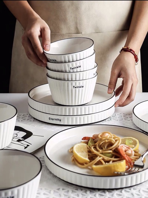 Bộ bát đĩa vân sọc hoạ tiết chữ Twinkie viền đen phong cách hiện đại
