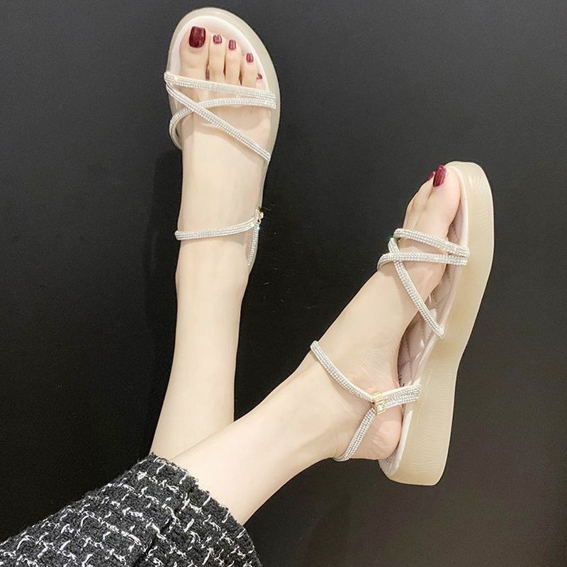 Xăng đan Đế Vừa Đính Đá Thời Trang Mùa Hè Dành Cho Nữ 2021