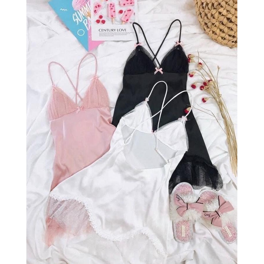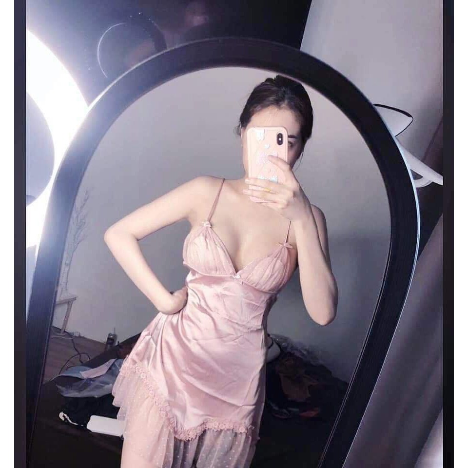 Bộ mặc nhà, bộ ngủ hai dây vải lụa Satin cao cấp, thời trang, quyến rũ nhà Sunshine Fashion