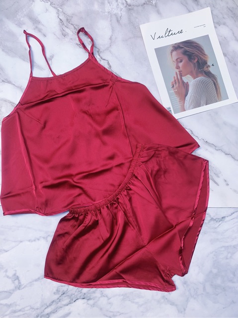 Pijama lụa satin quần đùi - ĐỒ MẶC NHÀ, ĐỒ BỘ