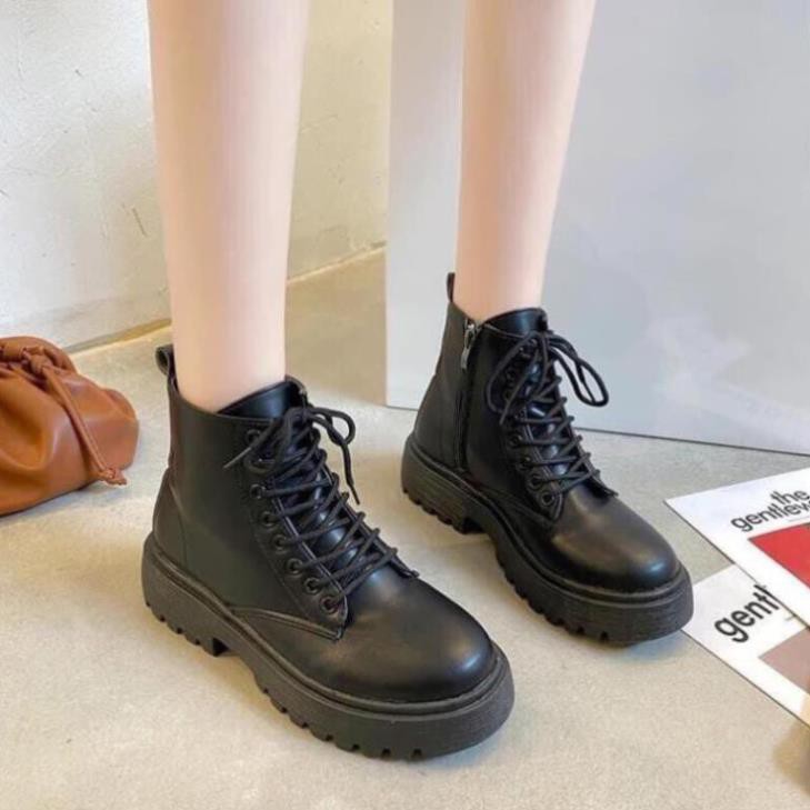 Boot nữ cổ ngắn đế 3 phân-Bốt nữ Martins phong cách Boots Ulzzang năng động da trơn bền đẹp TẶNG KÈM Mask dưỡng ẩm da