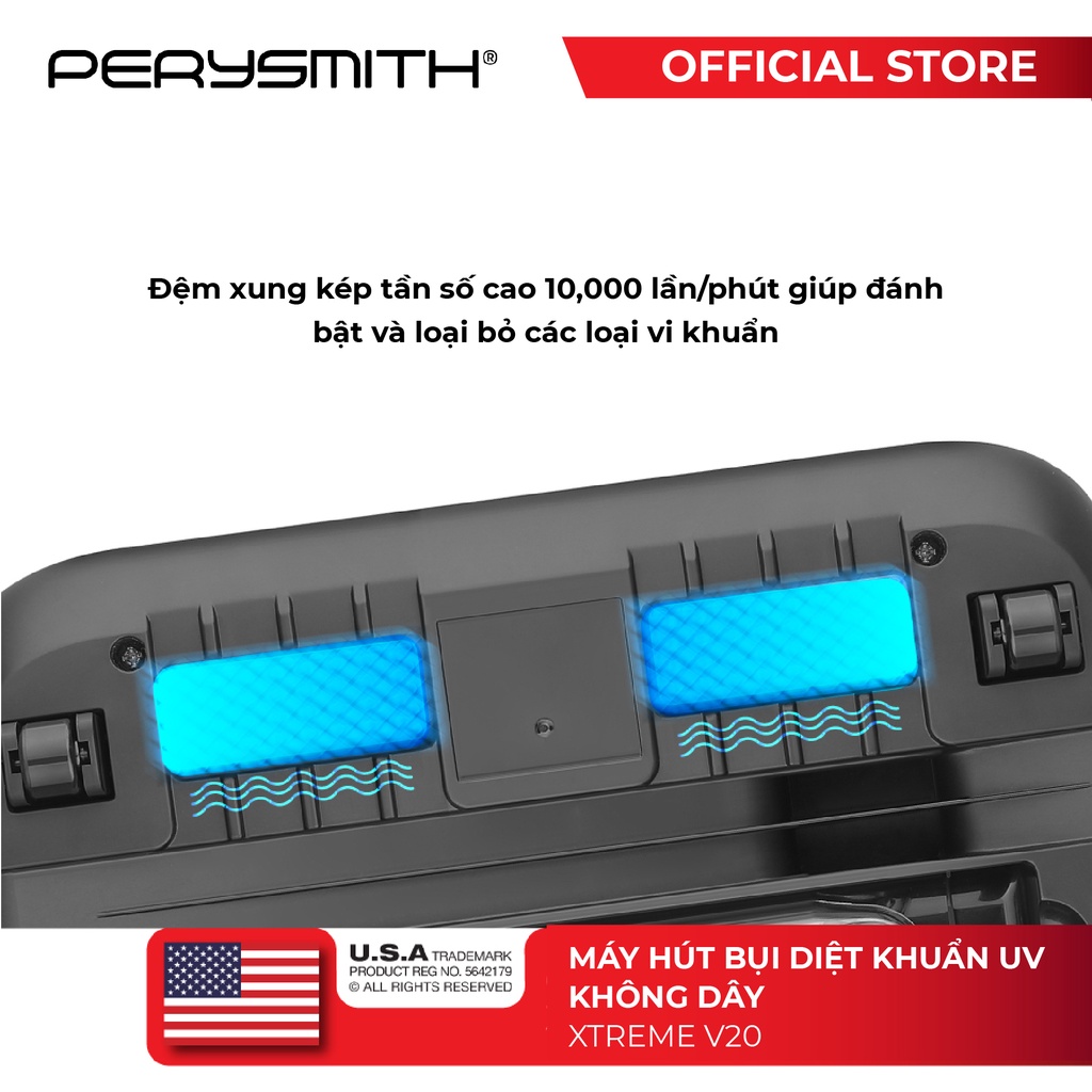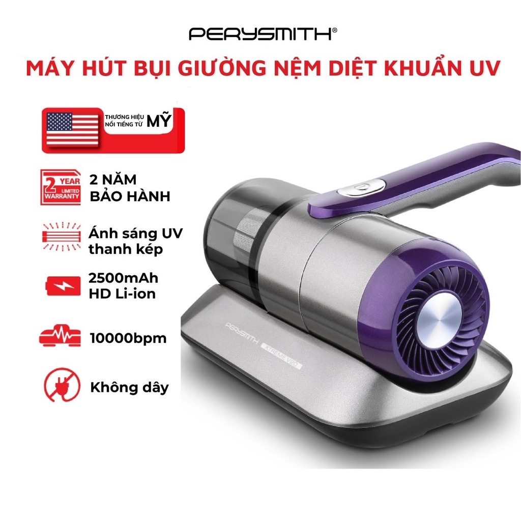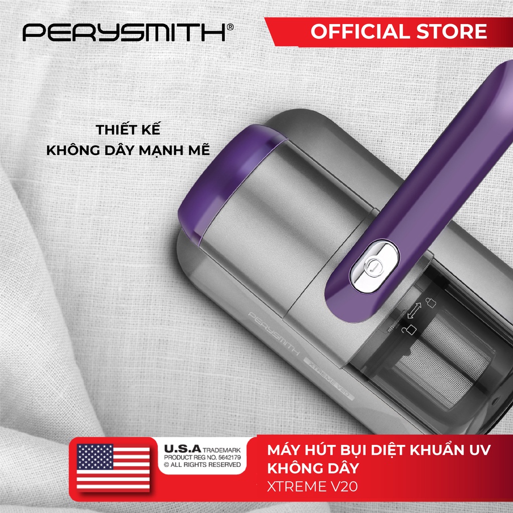 [Mã ELBMO500 giảm 10% đơn 500K] Máy hút bụi giường nệm diệt khuẩn UV PerySmith XTREME V20 không dây cầm tay