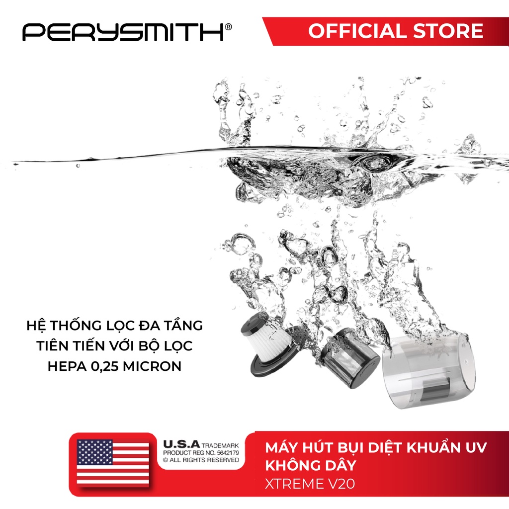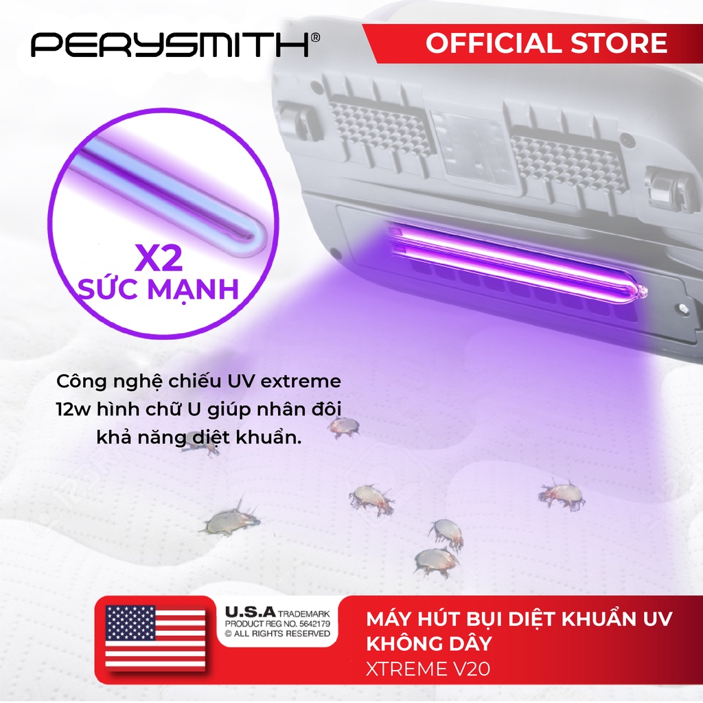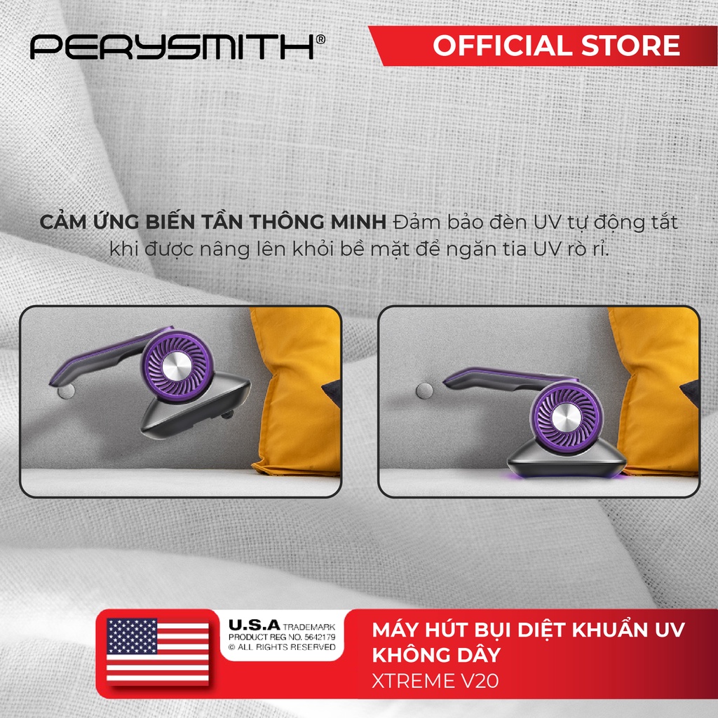 [Mã ELBMO500 giảm 10% đơn 500K] Máy hút bụi giường nệm diệt khuẩn UV PerySmith XTREME V20 không dây cầm tay