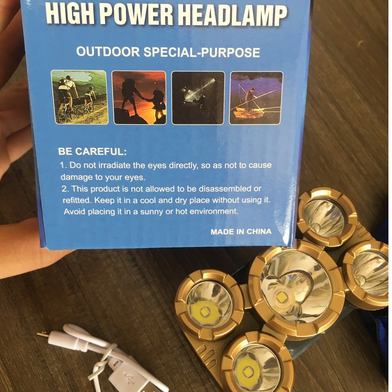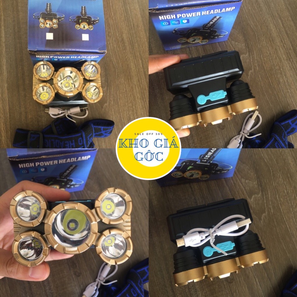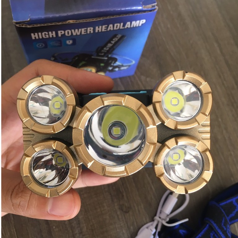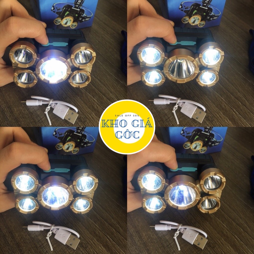 Đèn Pin Đội Đầu 5 Bóng Siêu Sáng Chống Nước Kèm Sạc