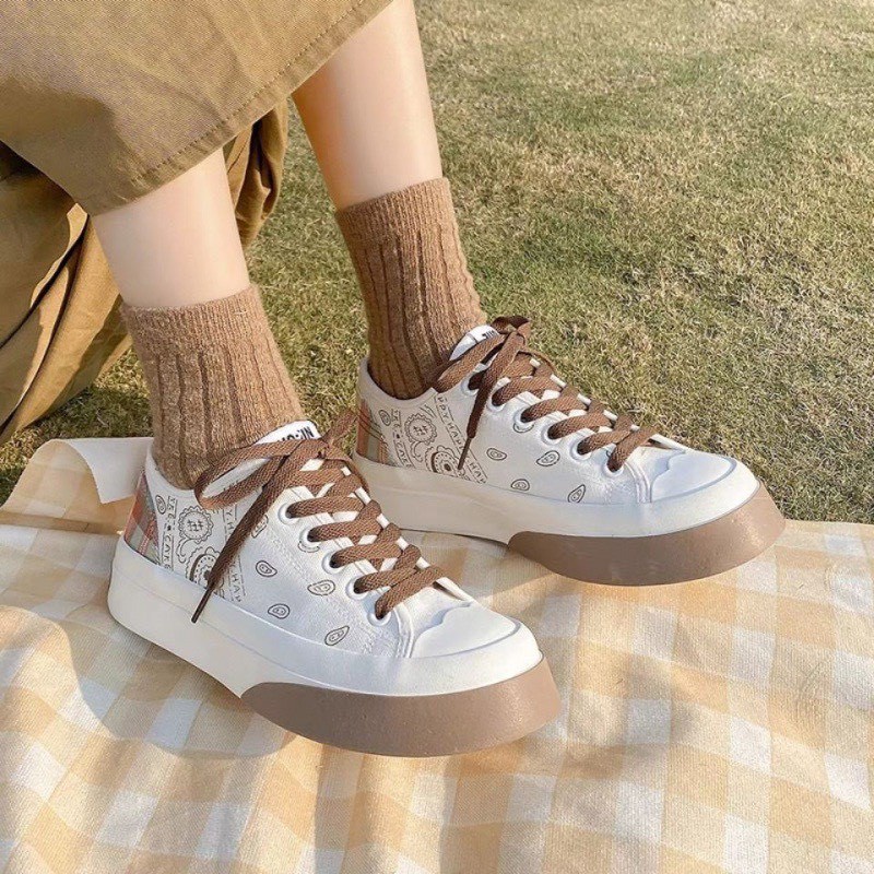 [Mã 11FASHIONSALE1 giảm 10000 đơn 50000] Giày thể thảo nữ vải họa tiết đáng yêu đế kẻ caro hot trend TURIN